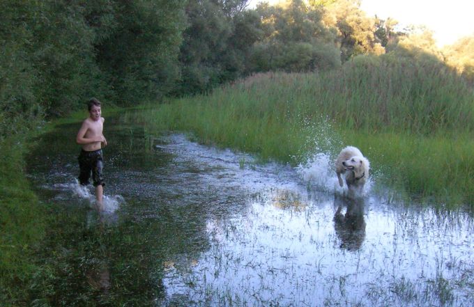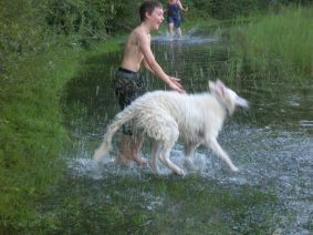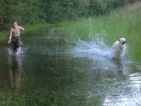 und Hund lieben das gemeinsam Spiel und genießen das Herumtollen und Baden! |