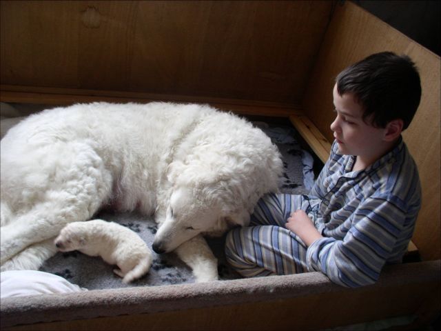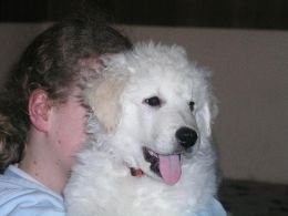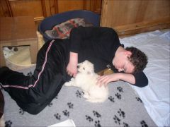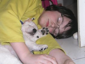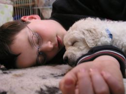 Vertrauen kuschelt sich der Welpe zum Schlafen an das "Menschenkind"!