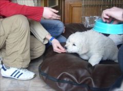 Für den Welpen eine sehr entspannte und angenehme Situation mit für ihn