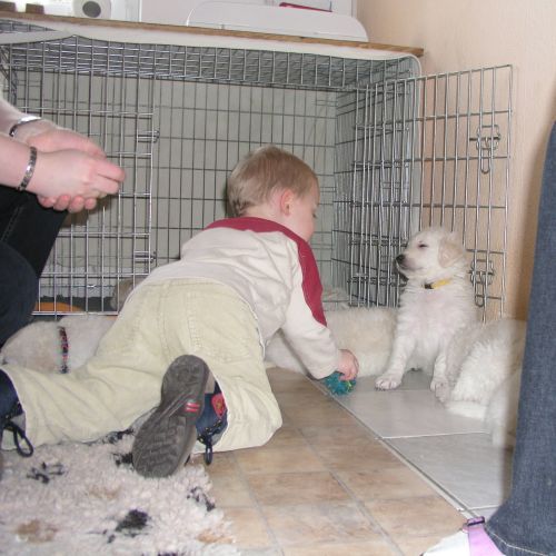 Die Prägung der Hundebabys auf Kinder beginnt schon in der Wurfkiste ...
