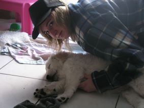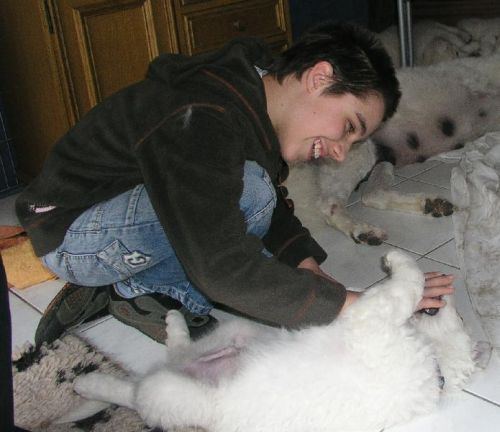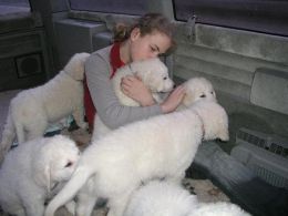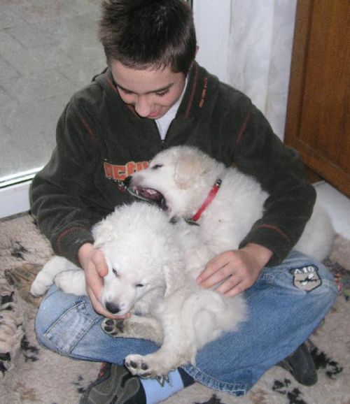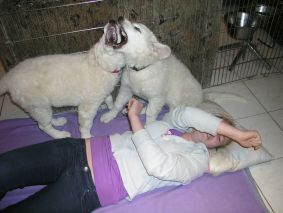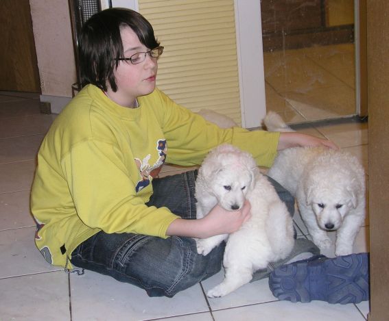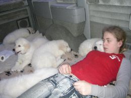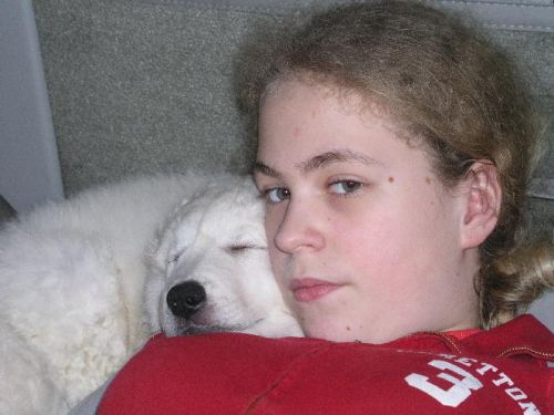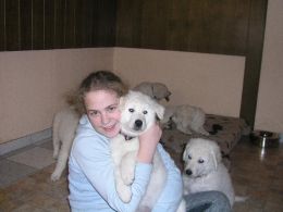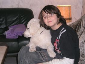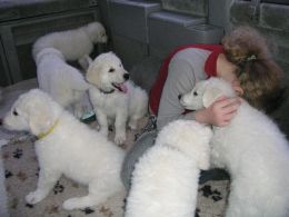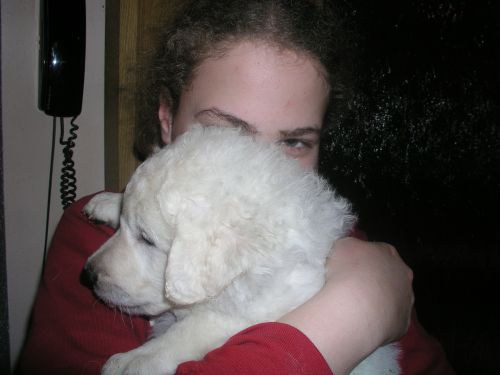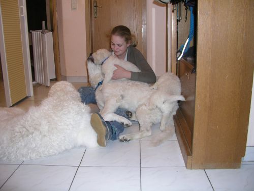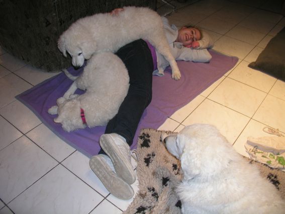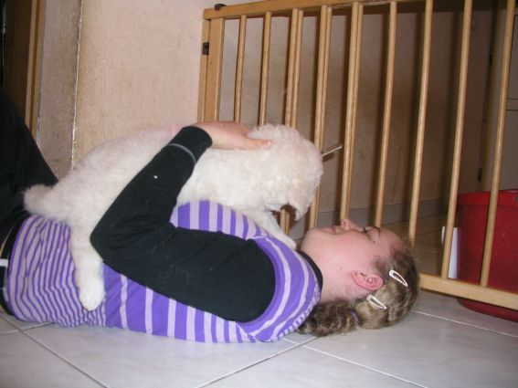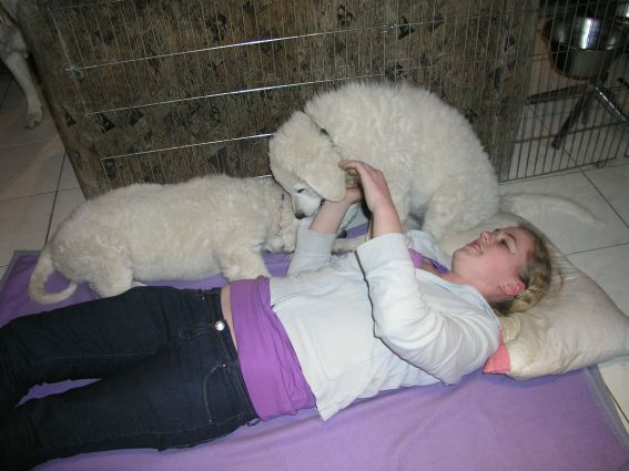 Die Welpen genießen das Schmusen und Kuscheln mit meiner Tochter und erleben