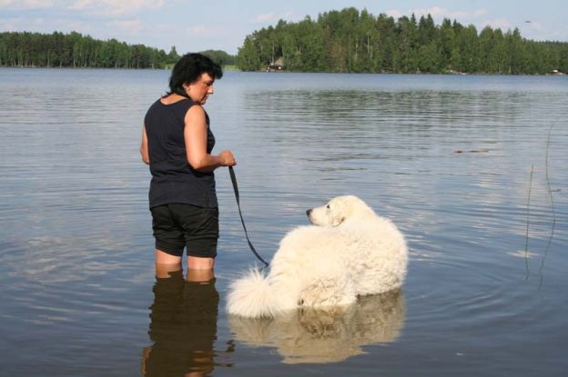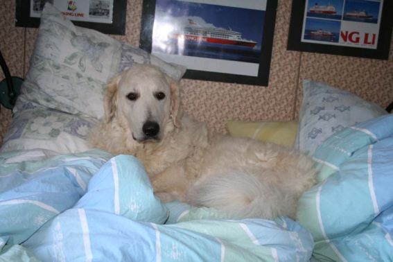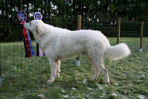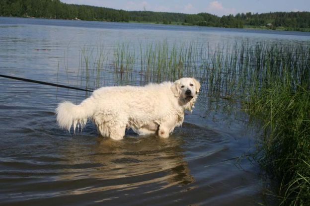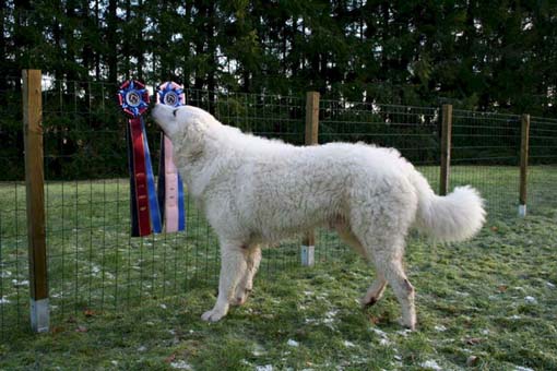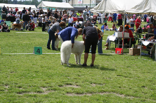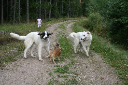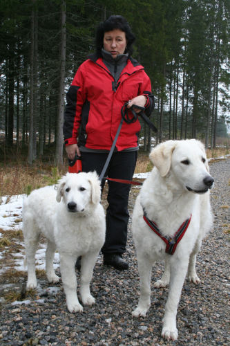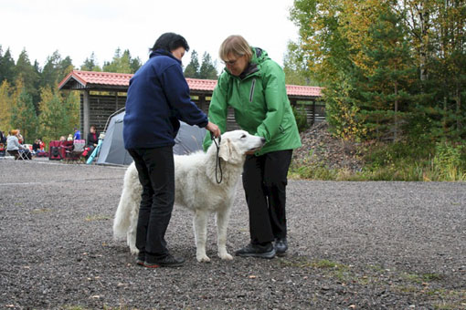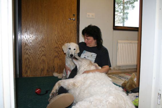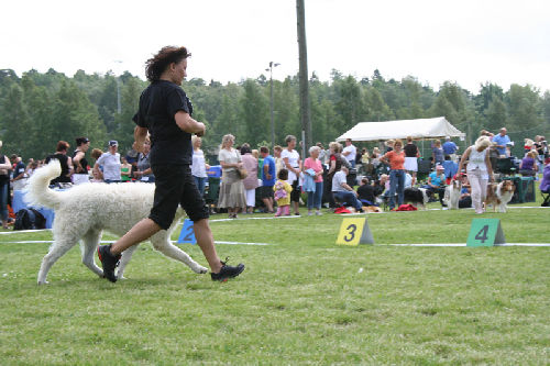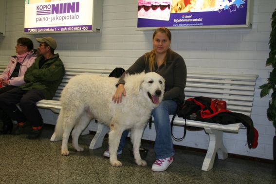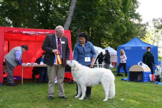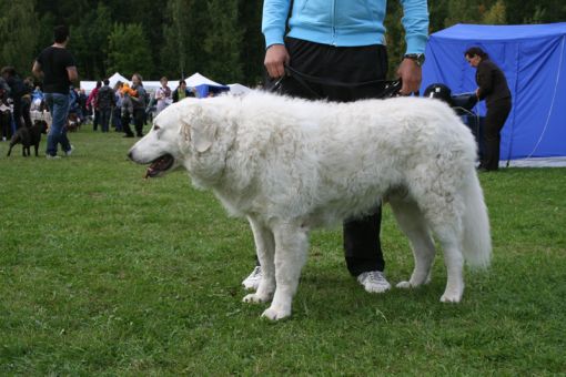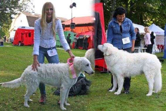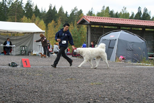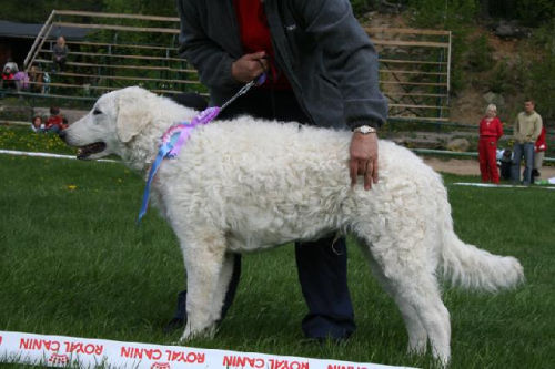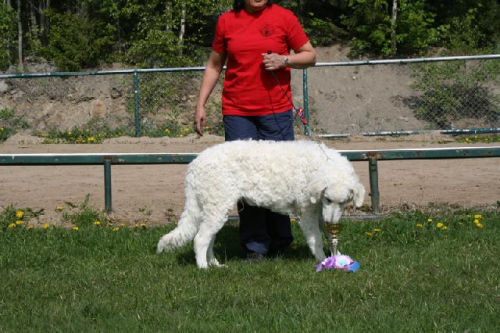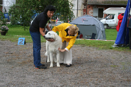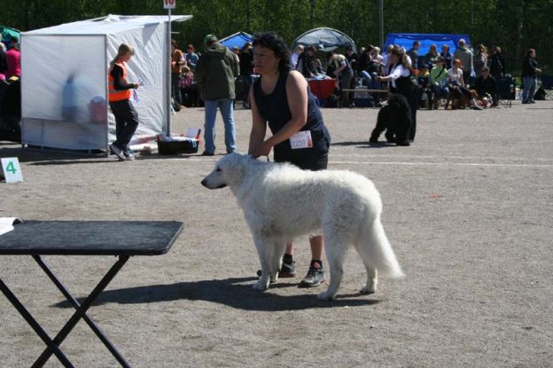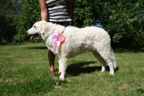 doing down there? And thanks for your wishes! Have you found a new home for Bardos yet? You can tell that also Pyry has got his puberty going, when we're in a forest, he doesn't always pay attention when I call him. Finally he comes. In a show ring he bites the leg of my trousers. But he will pass his puberty. Confirmation party went well, Pyry was lovely. We let him to be among the guests, he didn't care about them at all. He just said hello to them and went away, he's unbelieveable. We were on a show last weekend, I'll attach the judgement below! Our next show is in Hyvinkää on 9.8.2008 in a special show for Hungarian herding dogs. Pori International Dog Show 26.7.2008. Result: BOB puppy, honourable price. Judgement: "8 months old. Nice head. Angulations & topline still in developement. Good front angulations. Adequate hind angulations. Very good coat. Correct bite." Turku Dog Show 27.7.2008. Result: BOB puppy, honourable price. Judgement: "8 months old. Very nice type head with correct bite. Quite good body proposion. Strong chest. Good upperline. Correct hind quarters. Very good coat type. Correct tailset. Moved well, but needs a lot of training." The Kuvasz-folk likes his temperament and because he is going to be a big boy. |