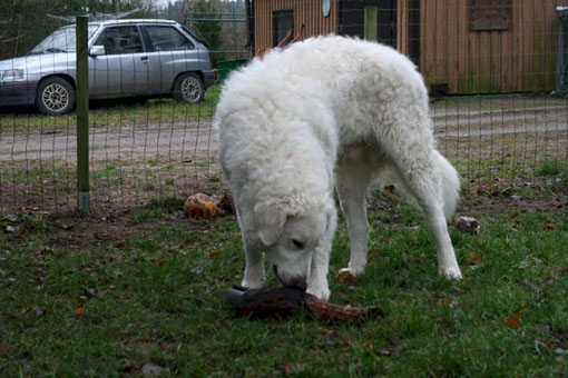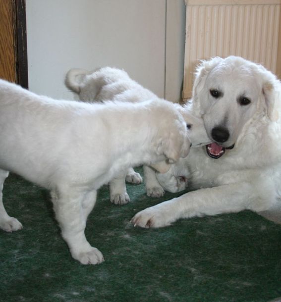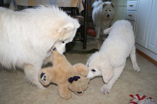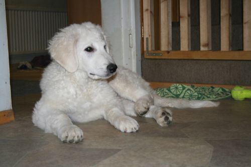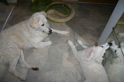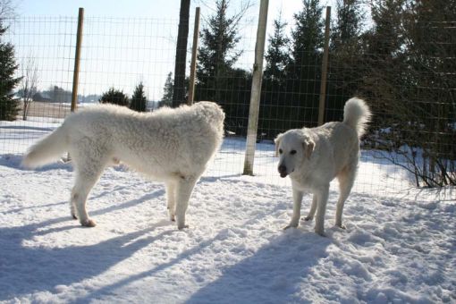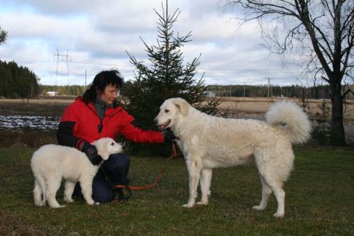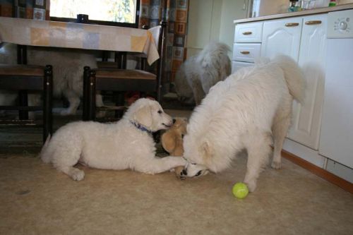them. We'll have our first show on 17th of may. On july the official shows will begin. I'll send you pictures from there. Do you brush Kuvaszes coat? Does your puppy eat 2 or 3 times a day? Pyry eats still 3 times a day. He weights 32 kg. We will scribble... |