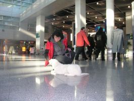 Flughafen um dann in seiner Flugbox den Flug nach Helsinki zu verschlafen. |