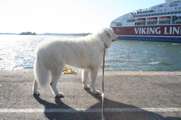 fotografiert. Sie achtet kaum auf ihn und um ihm herum befinden sich jede Menge andere Hunde und viele Menschen. Doch das alles stört Pyry nicht, denn er verlässt sich auf sein Frauchen und vertraut ihm! Eine perfekte Mensch - Hunde -Beziehung! |