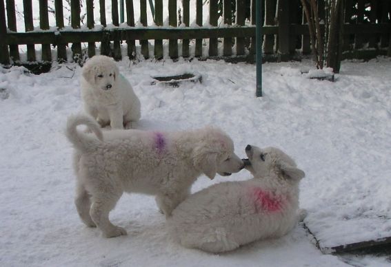 während Mama Leány Hündin "orange" und Hündin "lila" umsorgt!