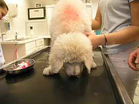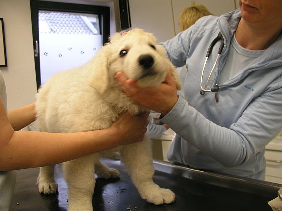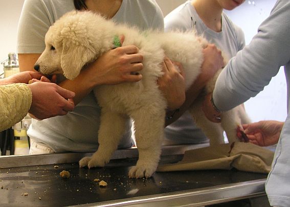 Blutabnahme bekommen die Kleinen gar nichts mit, während am Hinterlauf Blut