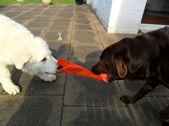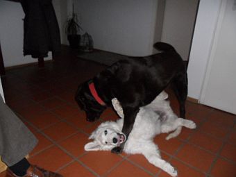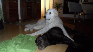 das erste Mal auf seine neue "Gefährtin" die 6-jährige Labradorhündin