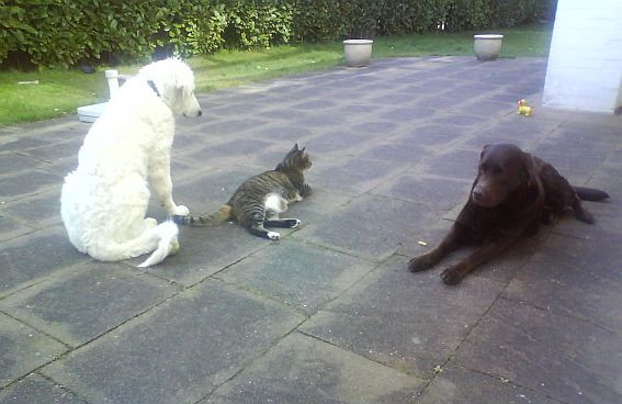 einmal Kater Bruno der sich den "Neuen" aber erst mal aus sicherer
