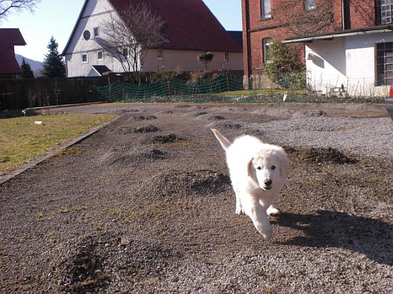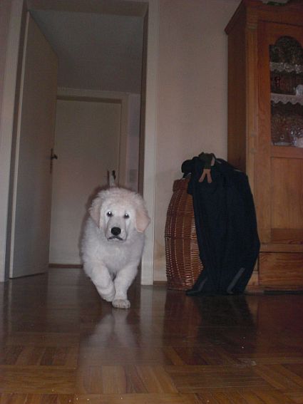 keinerlei Probleme. Heute morgen waren wir kurz in der Welpenschule,