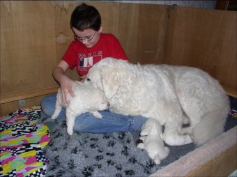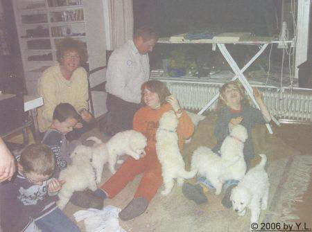 Potentielle Welpenkäufer, Freunde der Kinder und sonstige Besucher jeden Alters sind herzlich eingeladen uns durch unzählige Spiel- und Streicheleinheiten beim Prägen der Welpen zu unterstützen. So können die zukünftigen Besitzer "ihren" Welpen in der Aufzuchtsphase begleiten und eine frühe und enge Bindung zu ihm aufbauen. |
